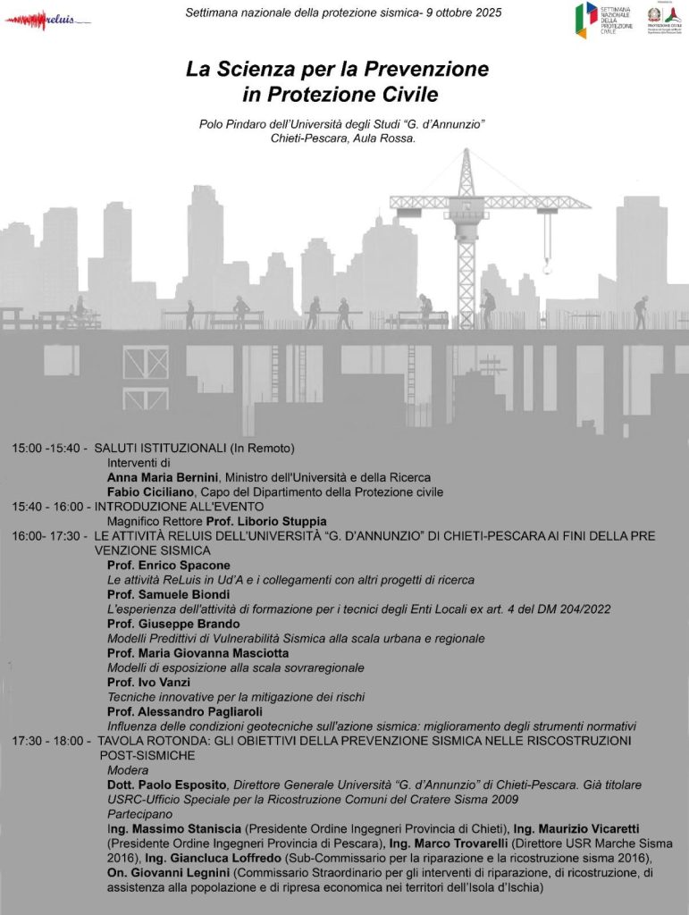 ReLUIS – Settimana nazionale per la protezione sismica – 9 ottobre 2025