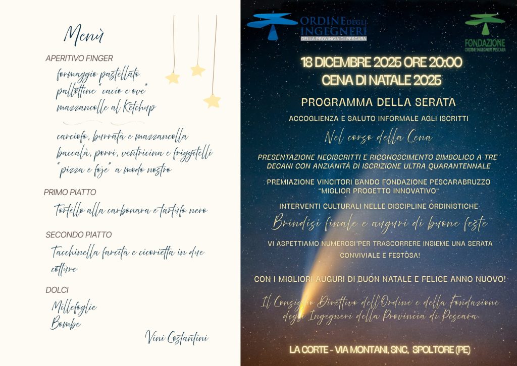CENA DI NATALE 18 Dicembre 2025 – Ordine Ingegneri di Pescara