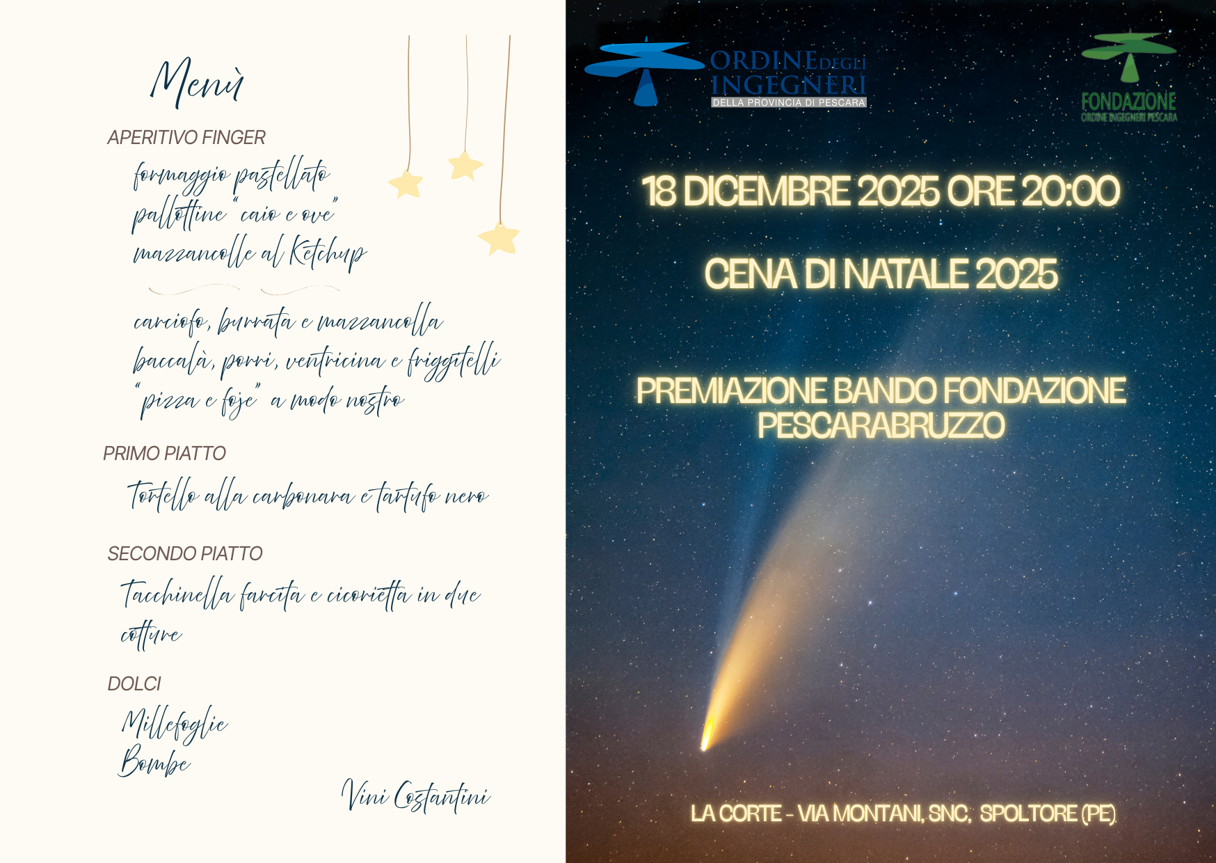 Vi aspettiamo il prossimo Giovedì 18 dicembre 2025 alle ore 20:00 presso OSTERIA LA CORTE, Via Montani a VILLA RASPA DI SPOLTORE.